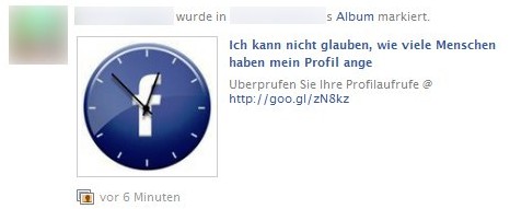 Die Masche ist immer die gleiche: Im Facebook-Nachrichtenstream erscheint das Posting eines Freundes mit marktschreierischen Botschaften wie vor Wochenfrist „Ich kann nicht glauben, wie viele Menschen haben mein Profil ange“ oder ganz aktuell heute „Diese Leute sind, die sich mein Profil am meisten! Finde heraus, wer Ihre Ansichten“. Dazu gibt’s noch den Link zu einer Webseite oder einer App. Trotz mancher orthographischer Mängel bedienen jene Spam-Nachrichten offenbar ein Urbedürfnis vieler Nutzer, denn meistens verbreiten sie sich in Windeseile durch das Netzwerk. Die Neugier, ob es Stalker unter den eigenen Freunden gibt oder der Ex immer noch vorbeischaut, siegt meist.