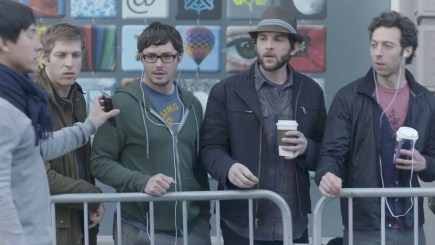 Und der Spot lässt kaum ein Klischee über Apple und seine dem Unternehmen ja geradezu religiös verschriebenen Jünger aus. „Das ist ein Event, an das wir uns für den Rest unseres Lebens erinnern werden“, proklamiert salbungsvoll ein Wartender mit Hut. Ein anderer fragt sich mit leicht ängstlicher Stimme: „Wenn es genauso aussieht, woher wissen andere dann, dass ich das Neue habe?“ – ein unverhohlener und leicht erkennbarer Seitenhieb auf das Anfang Oktober vorgestellte iPhone 4S also, welches das gleiche Design wie der Vorgänger iPhone 4 hat.