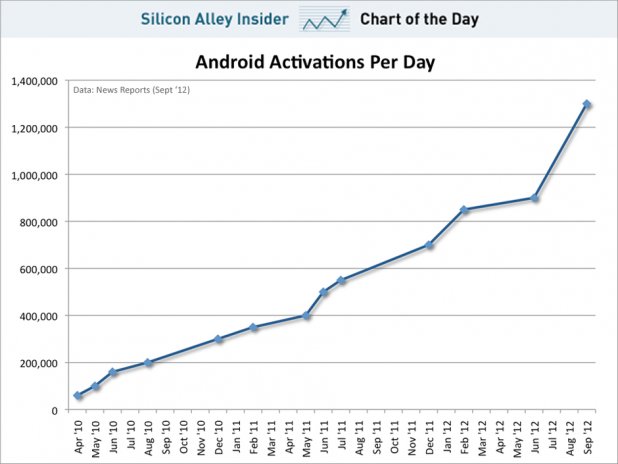 Dies ist ein deutlicher Sprung gegenüber den 900.000 Androiden, die Google im Juli freigeschaltet hat. Von den 550.000 Geräten vor einem Jahr ganz zu schweigen. Im Klartext: Binnen eines Jahres hat sich die Aktivierungsrate mehr als verdoppelt.