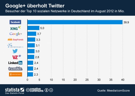 Nach jüngsten Zahlen hat das soziale Netzwerk von Google den US-Kurznachrichtendienst überholt. Auch im internationalen Vergleich ist Twitter hierzulande weiterhin unterrepräsentiert.