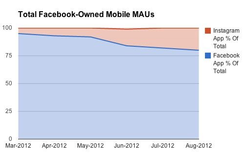 Zum anderen trägt Instagram inzwischen in nennenswertem Umfang zur mobilen Datennutzung des Zuckerberg-Imperiums bei: Laut Zahlen des Marktforschers Comscore, die das US-Techblog „Business Insider“ in der vergangenen Woche zitiert hat, hat Instagram im August bereits ungefähr 20 Prozent aller Mobilzugriffe.
