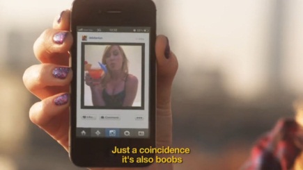 Sowas in der Art mögen sich auch die Jungs und Mädels der amerikanischen Comedy-Truppe „College Humor“ gedacht haben. In einem toll gemachten Video (eine Persiflage auf den Knödel-Rock der kanadischen Truppe Nickelback in ihrem Song – Achtung, erneute Doppeldeutigkeit – „Photograph“) nehmen sie den Hype rund um Instagram so richtig aufs Korn. Auf Englisch zwar, aber dank Untertiteln ganz gut verständlich. Und wie gesagt – der Busen ist rein zufällig drauf: