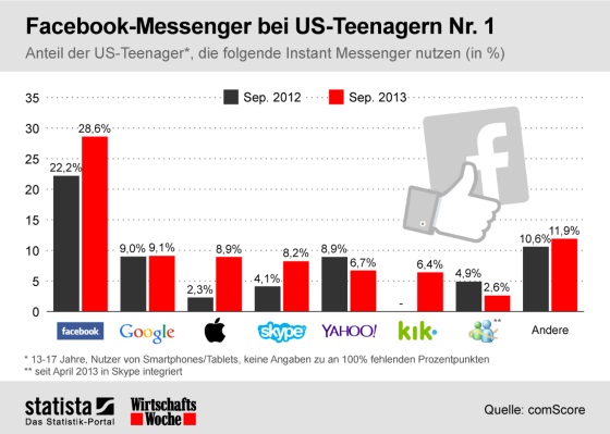 Die Lösung jenes scheinbaren Widerspruchs: Offenbar hat sich vor allem die Art der Facebook-Nutzung bei Teens verändert – weg von klassischen Status-Meldungen an eine große Zahl von Freunden hin zur Kommunikation in kleineren Interessengruppen. Es bleibt spannend, ob sich dieser Trend durch den Boom von Messengern wie WhatsApp, Line & Co. noch weiter verstärkt.