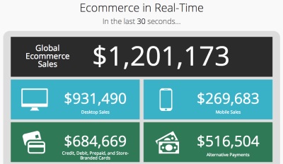 So werden beispielsweise weltweit alle 30 Sekunden mehr als 1,2 Millionen Dollar im E-Commerce umgesetzt. Der Großteil – nämlich mit 931.000 Dollar mehr als drei Viertel – immer noch am Tischrechner; nur ein Viertel an Mobilgeräten.