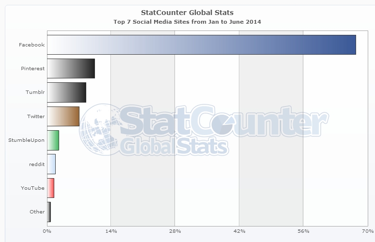 Laut StatCounter stammt rund 10,4 Prozent des so genannten „Referral Traffics“, also Verlinkungen und Weiterleitungen aus sozialen Netzwerken, von der digitalen Bilderwand Pinterest. Der Social-Blogging-Dienst Tumblr kommt auf 8,5 Prozent, während der Kurznachrichtendienst Twitter abgeschlagen bei gut 7 Prozent liegt.