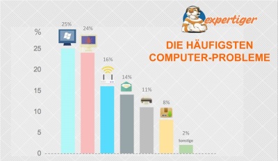 Der Anbieter von Computerhilfe Expertiger aus München hat 1000 IT-Supportfälle in einem sechswöchigen Zeitraum zwischen Mai und Juni dieses Jahres ausgewertet. Das Ergebnis der Studie: Jeweils gut ein Viertel aller Supportanfragen von deutschen Privatanwendern betrafen die Bereiche Betriebssysteme sowie Schadsoftware. Auf den Plätzen folgen Internet & Browser, E-Mail, Drucker und sonstige Geräte sowie Software.