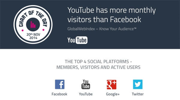 Doch bei der Betrachtung der monatlichen Besucher gibt es einen Überraschungssieger: Da hat nämlich das Video-Portal YouTube gegenüber Facebook leicht die Nase vorn. Dies ist das Ergebnis der jüngst veröffentlichten Zahlen von GlobalWebIndex über die Nutzung von Social Media im dritten Quartal. Die britischen Marktforscher werten regelmäßig die Daten von 170.000 Nutzern in 32 Ländern aus.