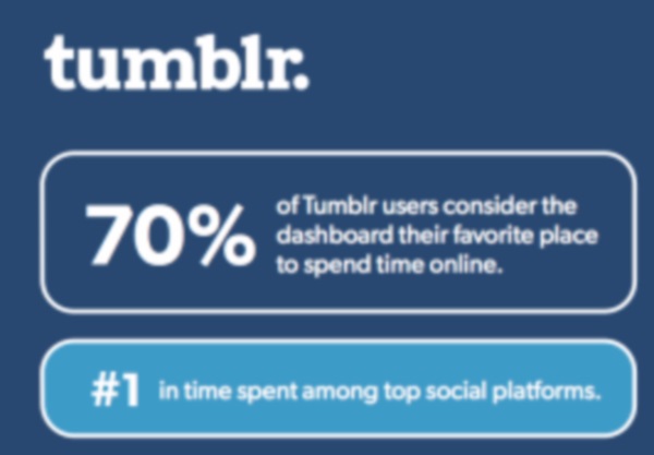 Zudem ist Tumblr ähnlich wie Social-Media-Rivale Facebook inzwischen ein regelrechter Mobil-Gigant: Fast zwei Drittel aller Nutzer greifen auf die Blog-Beiträge per mobiler App zu (65 Prozent). Und mehr als die Hälfte aller Postings wird bereits per Mobilgeräten veröffentlicht (54 Prozent).
