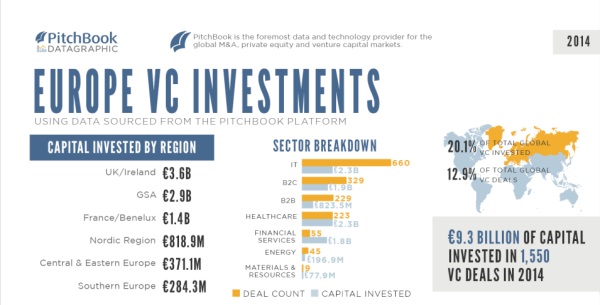 Der Top-Investor in Europa ist überraschenderweise der High-Tech Gründerfonds mit Sitz in Bonn: Der auf Initiative des Bundeswirtschaftsministeriums im Jahr 2005 ins Leben gerufene Fonds unter Beteiligung von BMWi und KfW auf der einen und Industrieunternehmen wie etwa Deutsche Telekom und Siemens auf der anderen Seite schloss 2014 immerhin 58 Deals ab.