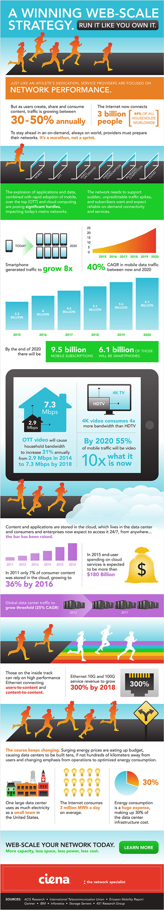 Der amerikanische Anbieter von Netzwerk-Technologie Ciena hat in einer Studie die Entwicklung des mobilen Breitbandmarktes untersucht. Das Ergebnis: Getrieben vom weiter anhaltenden Smartphone-Boom – wie kürzlich auch hier beschrieben – explodiert der mobile Datenverkehr in den kommenden Jahren geradezu.
