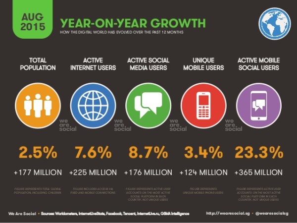 Die Kernaussage: Das Wachstum in der digitalen Welt ist weiterhin intakt. So legte die Zahl der Internet-Nutzer weltweit bis Ende Juli im Jahresvergleich immerhin um knapp acht Prozent zu, bei den Mobilfunknutzern beträgt das Plus 3,4 Prozent, und die Social-Media-Nutzer legten gar um fast neun Prozent zu: