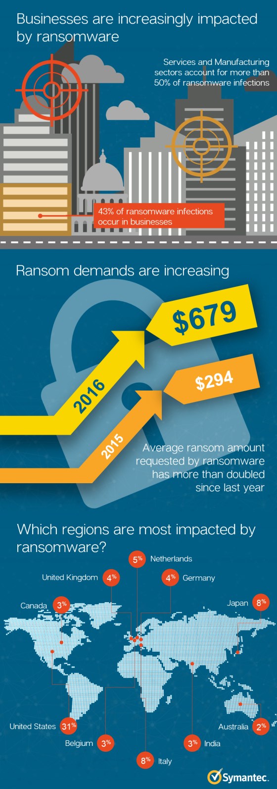 Mehr noch: Gleichzeitig stieg auch der Durchschnitt des geforderten Lösegeldes auf nunmehr 679 Dollar. Ende 2015 waren es mit durchschnittlich 294 Dollar noch weniger als die Hälfte.