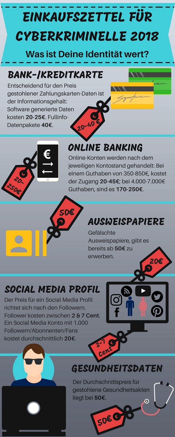 Je mehr persönliche Daten digital verfügbar sind, desto leichter lassen sich Komplett-Profile abgreifen & auf dem virtuellen Schwarzmarkt zu Geld machen.