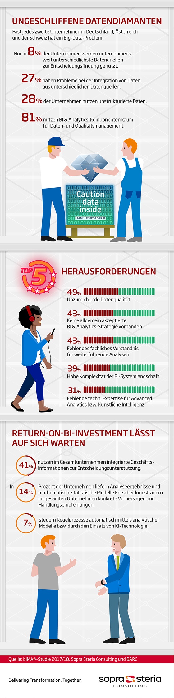 Das liegt unter anderem auch daran, dass die Unternehmen mit vielen Datenquellen überfordert sind. Das ist der wichtigste Befund einer Studie, welche die Unternehmensberatung Sopra Steria Consulting gemeinsam mit dem IT-Analysehaus Business Application Research Center (BARC) durchgeführt hat.
