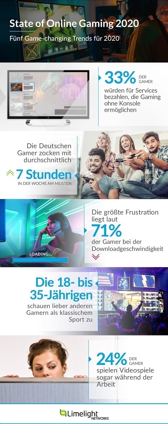 - Eine miese Download-Geschwindigkeit sorgt vor allem bei Hardcore-Gamern für Frustration: 87 Prozent der Befragten nervt der Prozess des Herunterladens von Spielen. Fast ein Drittel nannte lange Download-Zeiten als Grund. Das gilt vor allem für Gaming-Experten (41 Prozent) und angehende Profis (58 Prozent).