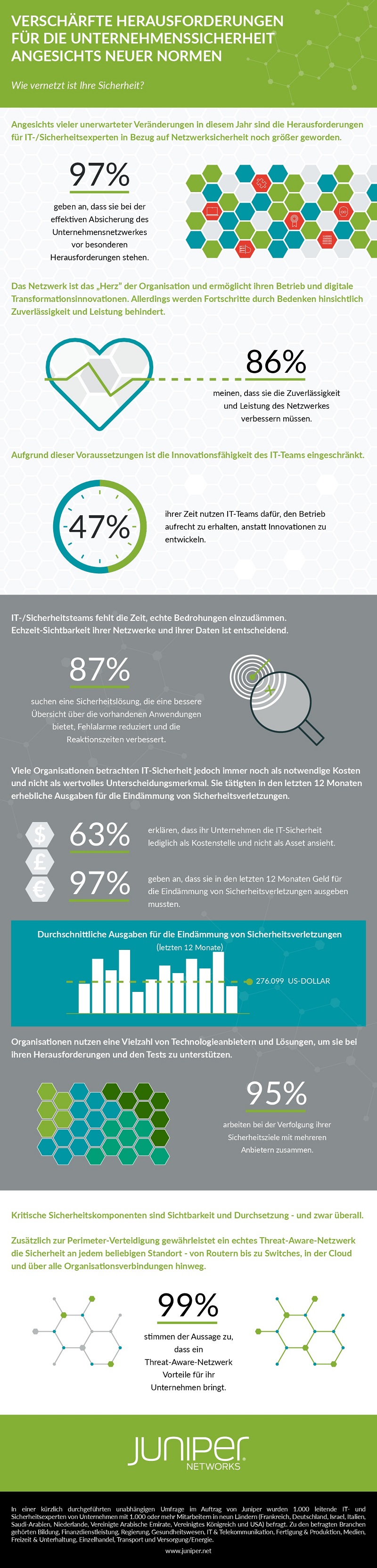 Zugleich stellt die dramatische Zunahme von Remote-Zugängen in vielen Firmen völlig neue Herausforderungen an die IT-Sicherheit. Wie jetzt eine Studie des US-Marktforschers Vanson Bourne im Auftrag des amerikanischen Netzwerkausrüsters Juniper Networks gezeigt hat, verschärfen die bisher vorherrschenden traditionellen Ansätze zum Schutz des Netzwerks die Herausforderungen angesichts von Budgetbeschränkungen und remote arbeitenden Mitarbeiten deutlich.