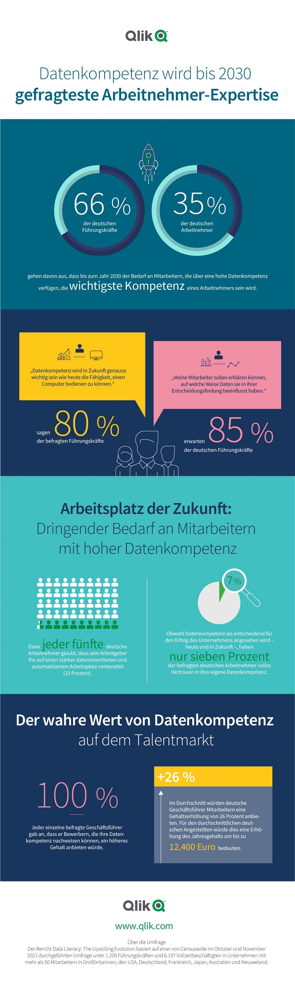 Der Report „Data Literacy: The Upskilling Evolution“ wurde in Zusammenarbeit mit den Marktforschern von The Future Labs entwickelt und unter 1209 globalen Führungskräften und 6197 Mitarbeitern durchgeführt, davon 200 Führungskräfte und 1000 Beschäftigte aus Deutschland.