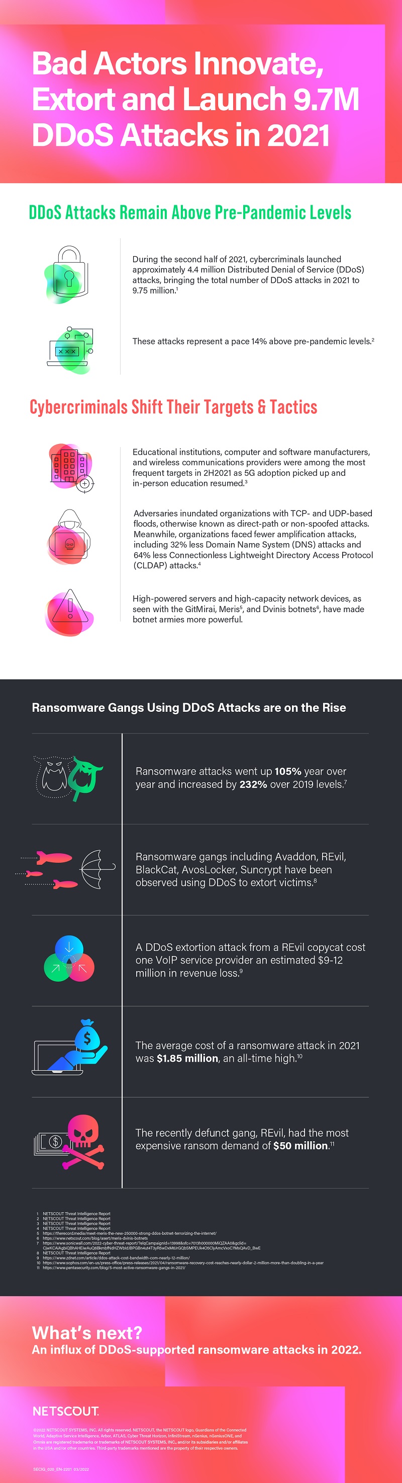 Demnach gab es 2021 rund 9,75 Millionen verteilte Denial-of-Service-Angriffe (distributed Denial-of-Service oder DDoS – siehe Erläuterung). Das ist ein Rückgang von 3 Prozent gegenüber der Rekordzahl von Millionen Attacken im Jahr 2020. Das ist die zentrale Aussage einer Studie, die der amerikanische IT-Security-Anbieter Netscout kürzlich veröffentlicht hat.
