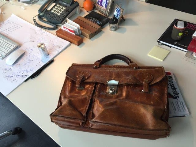 Die Aktentasche hat Bimböse seit rund 35 Jahren. Sie begleitet ihn schon sein ganzes Arbeitsleben lang.