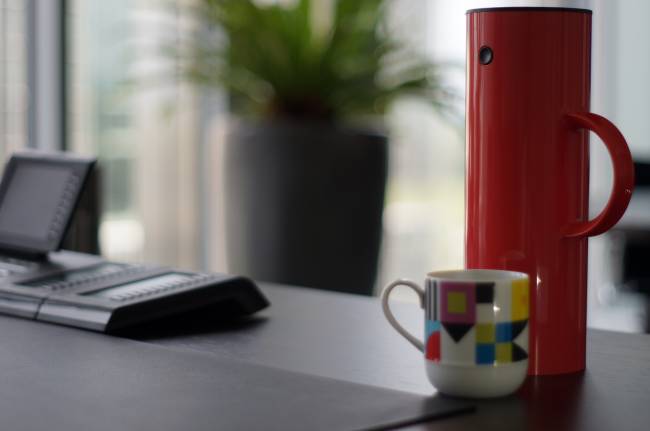 Diese Teekanne hilft Gabriele Sons über den Arbeitsalltag – deren knallrote Farbe braucht sie, um immer daran zu deneken, etwas zu trinken.
