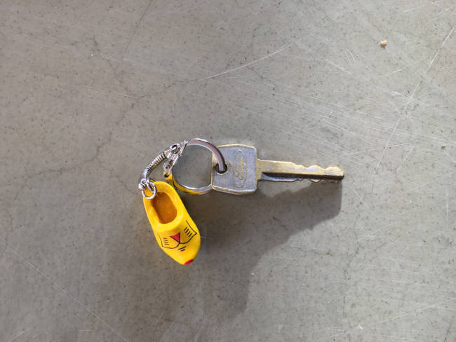 Dieser Schlüsselanhänger mit den Holzclogs „sind nicht nur Symbol für die Niederlande, sondern auch eine Urform dessen, was wir herstellten: niederländische Schuhe.“ Van Bommels Vater hatte ganz früher, als er in den 80-ern auf der Schuhmesse ausgestellt hat, immer ein Paar Holzclogs vor den Standeingang gestellt.