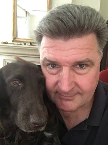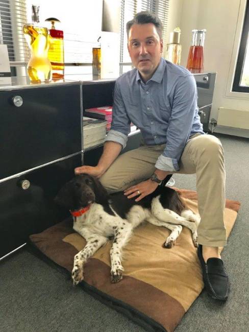Martin Ruppmann, Geschäftsführer des VKE-Kosmetikverbands, mit Akira, einem Kleinen Münsterländer.