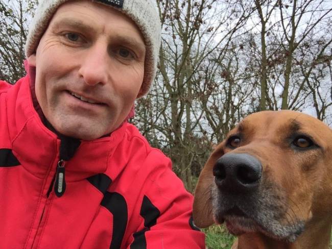 Lars Brickenkamp ist Senior Vice President beim Elektrotechnikunternehmen TE Connectivity und wird begleitet vom Rhodesian Ridgeback Aila