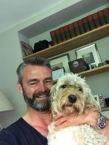 Mark Wilhelm, Kanzleigründer der Versicherungskanzlei des Jahres bei „Juve“, mit Luna Godzilla – einem Jack Russel-Spitz-Cocker Mischling