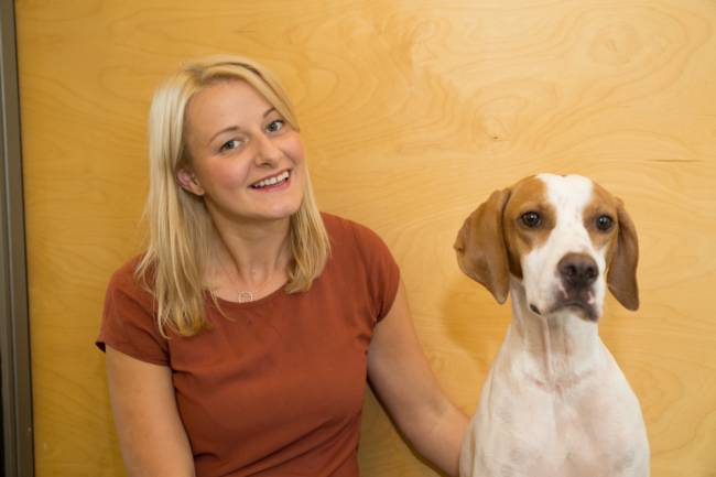 Marion Schumann – Senior Manager Corporate Marketing – wird in die Strategieagentur diffferent (ja, mit 3 f) von ihrer Pointer-Hündin Lotti begleitet.