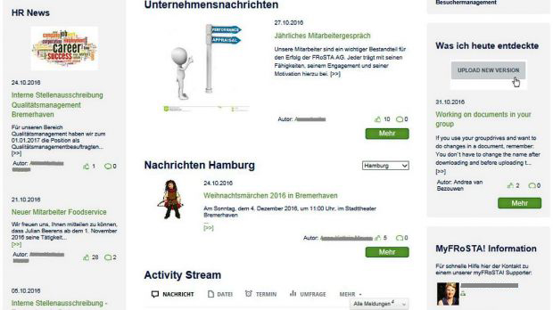 Die Idee dahinter: Im Intranet wird auf so viel Bürokratie wie möglich verzichtet. In Rubriken wie „Lokale Nachrichten“ und „myFRoSTA! Help“ können Mitarbeiter selbst und direkt ihre Beiträge veröffentlichen.