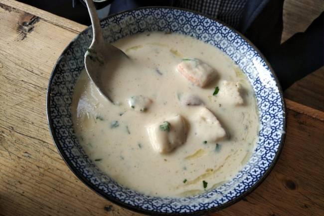 Wir sitzen in der „Löffelbar“ in Düsseldorf und Daniel Biene hat eine Kartoffelsuppe mit Pilzen bestellt.