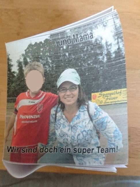 Dieser Post-it Block mit dem Bild ihres fußballbegeisterten Sohns liegt immer auf Elke Vorholts Schreibtsch. „Der Block ist das letzte Exemplar aus einer Serie von vier Motivblöcken, den hüte ich sorgsam und nutze ihn nur spärlich für die wirklich wichtigen Notizen“, sagt sie.