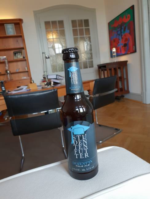 Diese spezielle Bierflasche bekam Jürgen Wessing – er ist auch Professor an der Uni Düsseldorf – von seinen Studenten geschenkt.
