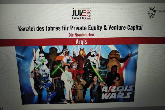 Für Abwechslung sorgte Arqis mit diversen Szenen in Star-Wars-Kostümen, GSK Stockmann als Raumschiff-Enterprise-Besatzung, Game-of-Thrones-Darsteller oder Big-Bang-Theory-Clique, Mercks Juristin als Superwoman. Superhelden-Kostüme gab es auch bei Pinsent Masons, zum Thrma passend kamen die Compliance-Anwälte daher, die CMS-Anwälte zeigten eine Bürogebäude-Einweihung, die Volkswagen-Juristen gingen auf die Knie. Die Moderatorin wollte dem VW-Juristen für seine Frisur einen Award verleihen, aber zu ihrem Bedauern lief er ausser Konkurrenz.