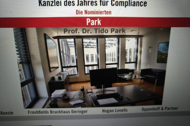 Ein Rätsel bleibt, warum die Compliance-Kanzlei Park die verwaisten Büros ihrer Anwälte zeigte – mit Namenszug, aber leider ganz ohne Menschen.