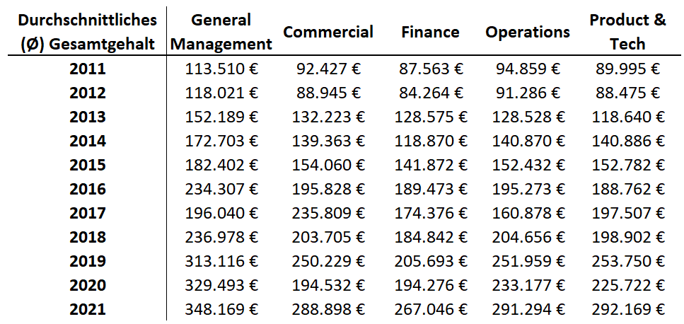 Eine rasante Gehaltsentwicklung gab´s bei den Führungskräften mit Digital-Expertise in den vergangene zehn Jahren: Lag die durchschnittliche Gesamtvergütung der analysierten C-Level-Kandidaten – also im Top-Management – 2011 noch bei durchschnittlich 100.000 Euro, so betrug sie 2021 rund 260.000 Euro, zeigt eine Analyse der Personalberatung i-potentials. Danach soll das Jahressalär in der Spitze bei weit über 500.000 Euro liegen können.
