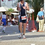 wundern. Über den Streckenverlauf des Marathons, der an einer Stelle mitten durch die Liege eines Strandbades führt. Rechts und links liegen Badende und wir Teilnehmer trotteln mehr oder minder erledigt durch die Liegenden in einer abgesperrten Gasse. Zwei Mal führt die Strecke dort lang, beim zweiten Mal gehe ich den leichten Anstieg. Es gehen überhaupt schon sehr viele Teilnehmer. Ich gönne es mir nur in den Getränkestationen, dort aber umso genussvoller. Aber ich will Laufen, die letzten Reste Ehrgeiz reichen für eine Bewegung, die als Zeitlupenlauf durchgeht. Der Körper will nicht mehr, der Kopf meint, es müsse sein, so streiten die sich und ich mittendrin. Der Kopf siegt.
