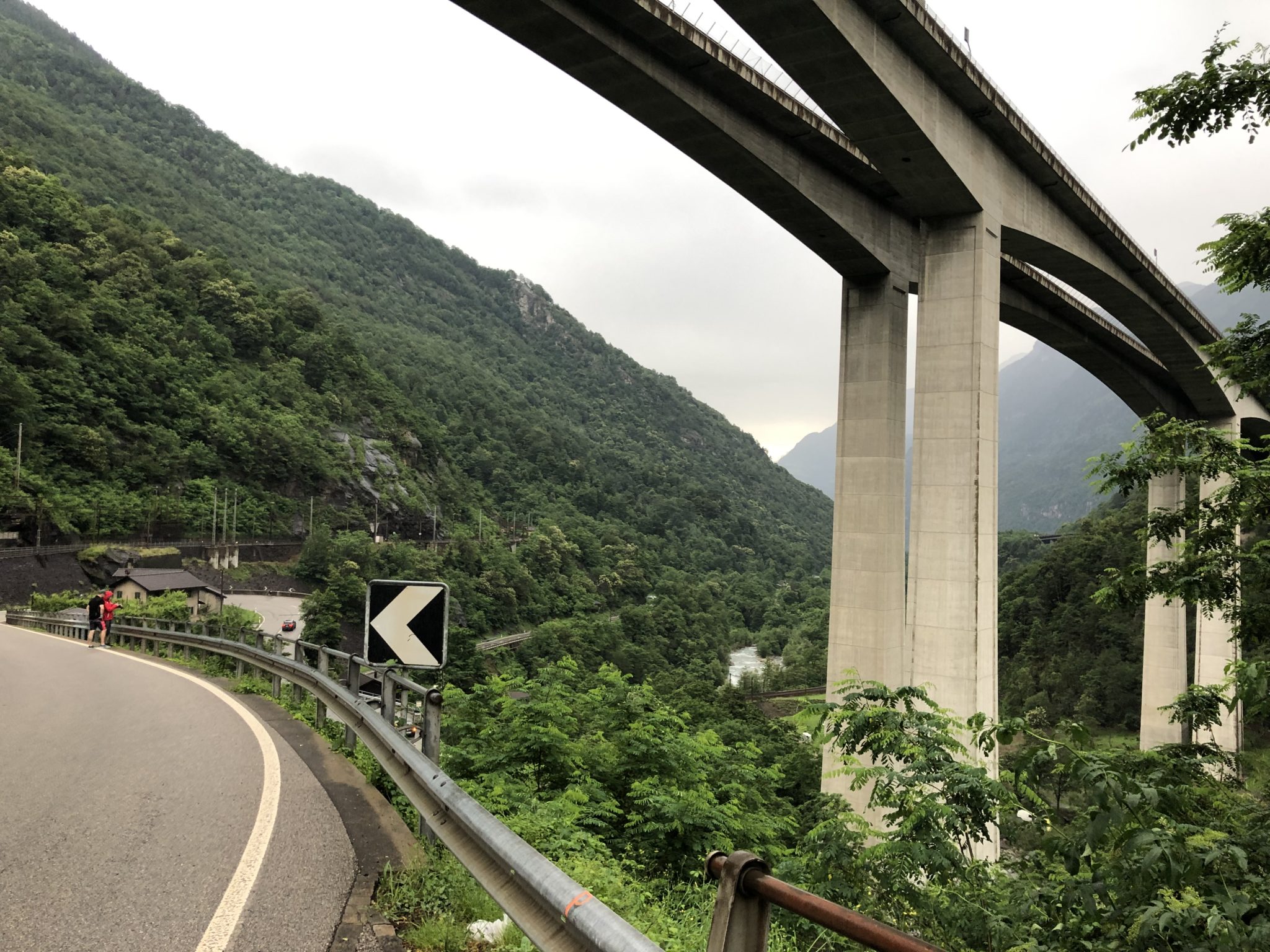 Dann kam zum Glück erstmal eine satte lange Abfahrt, in der es uns Support-Team-Mitgliedern Kilian (MC Orga), Roberto (Medienbegleitung) und mir (designierter Mitläufer für die abschließenden neun Kilometer Laufanstieg von Grindelwald auf die Kleine Scheidegg) schwer fiel, mit den Autos einen nennenswerten Vorsprung herauszufahren. Das hellte im Tal die Laune von Tobias sichtlich auf. Er hatte plötzlich und im Grunde ohne jede Erklärung gute Laune, inhalierte gut eine halbe Tüte Schokobananen und zog in den Kampf mit dem letzten Pass. Ein im Tagesvergleich kleiner Pass ohne Schnee und Temperaturen unter zehn Grad Celsius, aber doch anstrengend genug, um einen normalen Radfahrer zum Absteigen zu zwingen.