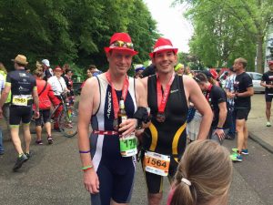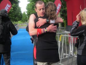 Deswegen nochmals auch an dieser Stelle Dank an meine wichtigste Teampartnerin, meine Frau, die sich in Hamburg über den Zaun hinweg mit mir unterhalten hat, als ich in Redelaune vom Schwimmen kam und aufs Rad steigen wollte. Sie war dabei als ich in Hannover ins Ziel kam – und konnte mir in einem Ironman in Maastricht auch die Medaille umhängen. Wir haben als Gemeinschaft all das erlebt und ich bin nicht sicher, wer mehr gelitten hat und erschöpfter war angesichts der Strapazen, die die Begleitpersonen mitmachen. Mitfiebern, Essen vergessen, ewig stehen, warten, sorgenvoll sein – es zehrt an den Nerven.