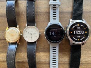 Denn eines ist klar, eine Uhr mit 41mm Durchmesser ist in diesem Segment klein und vor allem männliche Sportler sind in der Regel damit völlig einverstanden. Die Ära der übergroßen Uhren, eingeläutet von Officine Panerai vor nun bald 20 Jahren, ist schon seit langem im Massenmarkt angekommen. Herrenuhren, wie es sie Mitte des 20. Jahrhunderts wie selbstverständlich gab, sind heute die Ausnahme. Die Größen von 38mm sind in der Regel „Damenuhren“. Und auch die forerunner 255S richtet sich an weibliche Athleten. Das belegt eindeutig das Armband. Ich habe schmale Handgelenke und bekomme es bequem geschlossen, aber viel Luft ist da nicht mehr.